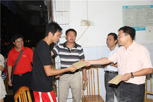 公司黃鼎龍董事長(右一)、藍(lán)書記(右二)給球員頒發(fā)獎金
