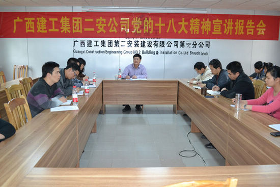 集團副總經(jīng)濟師、二安公司黨委書記劉傳海,在公司柳州長豐路基地向第一、第四、第六分公司黨員、職工進行宣講。公司黨委副書記、紀委書記、工會主席羅振中在公司會議室向公司機關(guān)、第三分公司、直屬分公司黨員、職工進行宣講。講述了理解十八大精神的重要關(guān)鍵點、十八大的重要成果等內(nèi)容,傳達了在今年召開全國兩會上習近平同志、李克強同志關(guān)于貫徹落實十八大精神的重要講話。并與黨員、職工開展互動交流,探討了貫徹落實十八大精神改善職工民生、推進公租房建設(shè)、工資制度改革、轉(zhuǎn)變工作作風、提高工作效率等問題。宣講會結(jié)合實際,生動活潑,受到廣大黨員、職工歡迎。